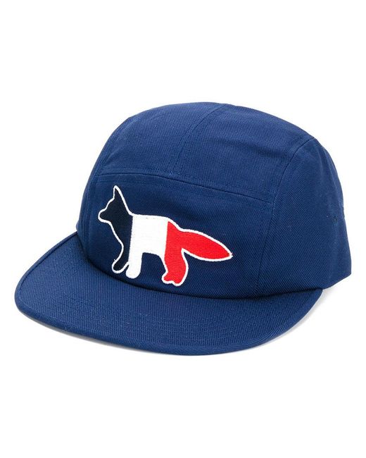 Light blue cotton logo embroidered cap from maison kitsuné featuring logo patch to the front, embroidered logo to the rear and adjustable fit.